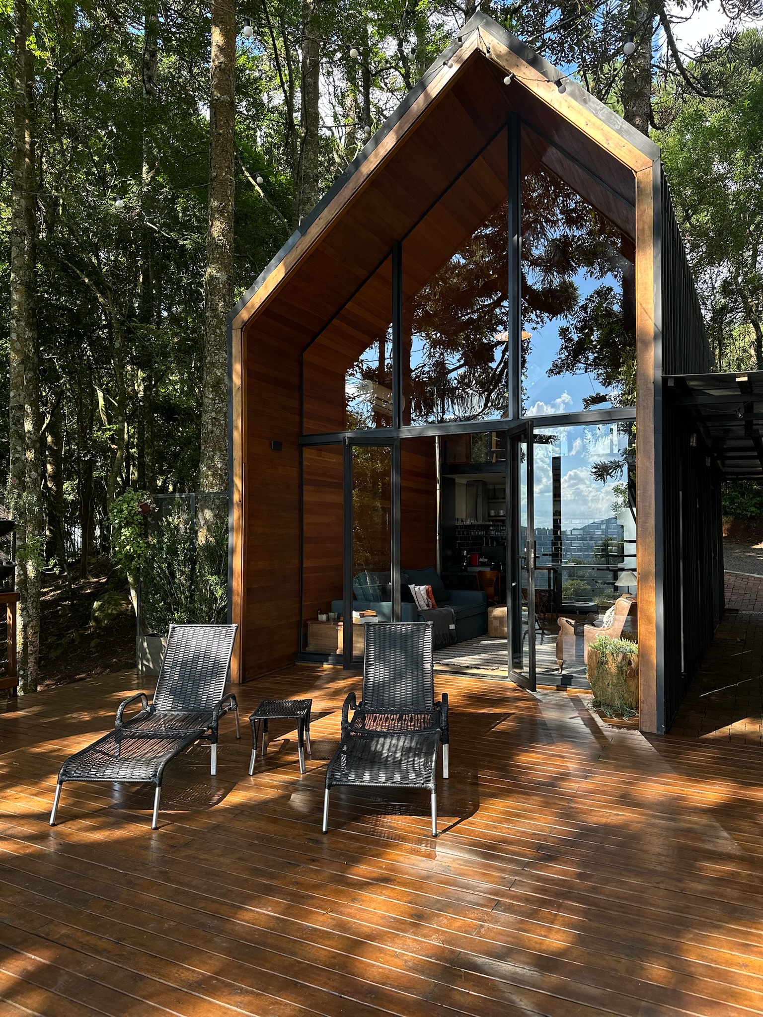 Design inspirado nos chalés escandinavos, adaptado ao clima e paisagem da Serra Gaúcha